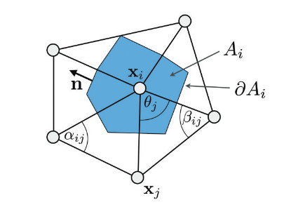 我们从三角网格表面的 laplacian 举例如何计算,这部分更详细的推导可见